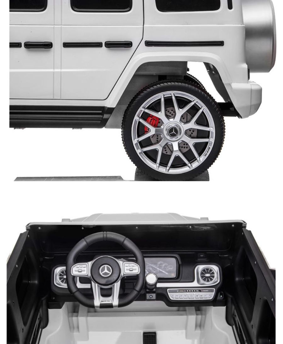 Lisanslı Mercedes g63 24 volt 4x4 (4 tekerden çekişli) Eva yumuşak lastikler Akrilik gerçek araç boyası Deri koltuklar ve emniyet kemerleri Amartisor sistemi Açılır kapanır kapıları Açılışta motor çalıştırma sesi Korna ve kendinden kayıtlı müzikler Müzik çalar USB-aux-microsdkart girişi Güçlü LED farlar ve stop lambaları 60 kg taşıma kapasitesi 8 yaşa kadar kullanim imkani