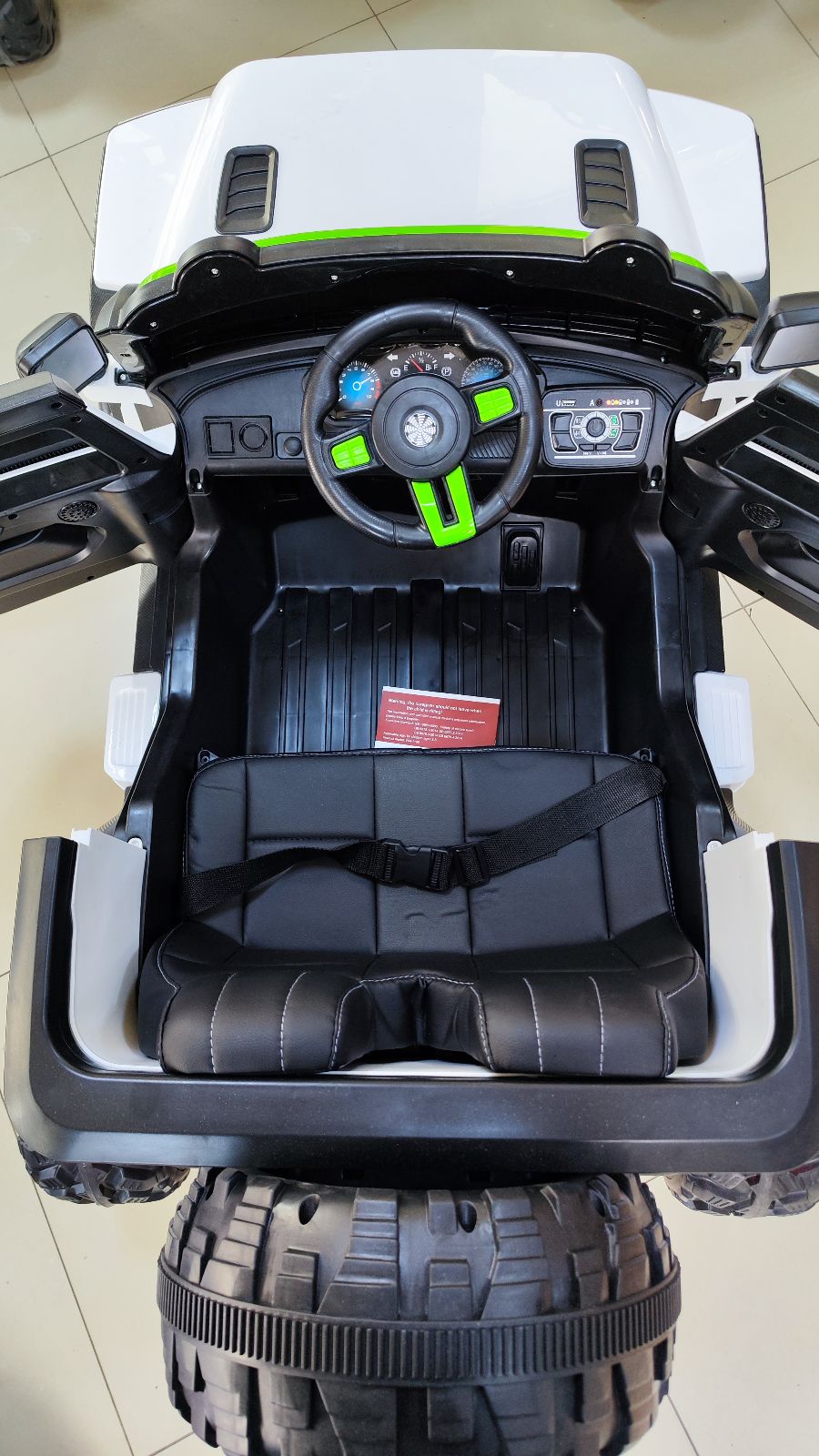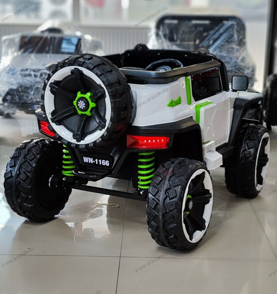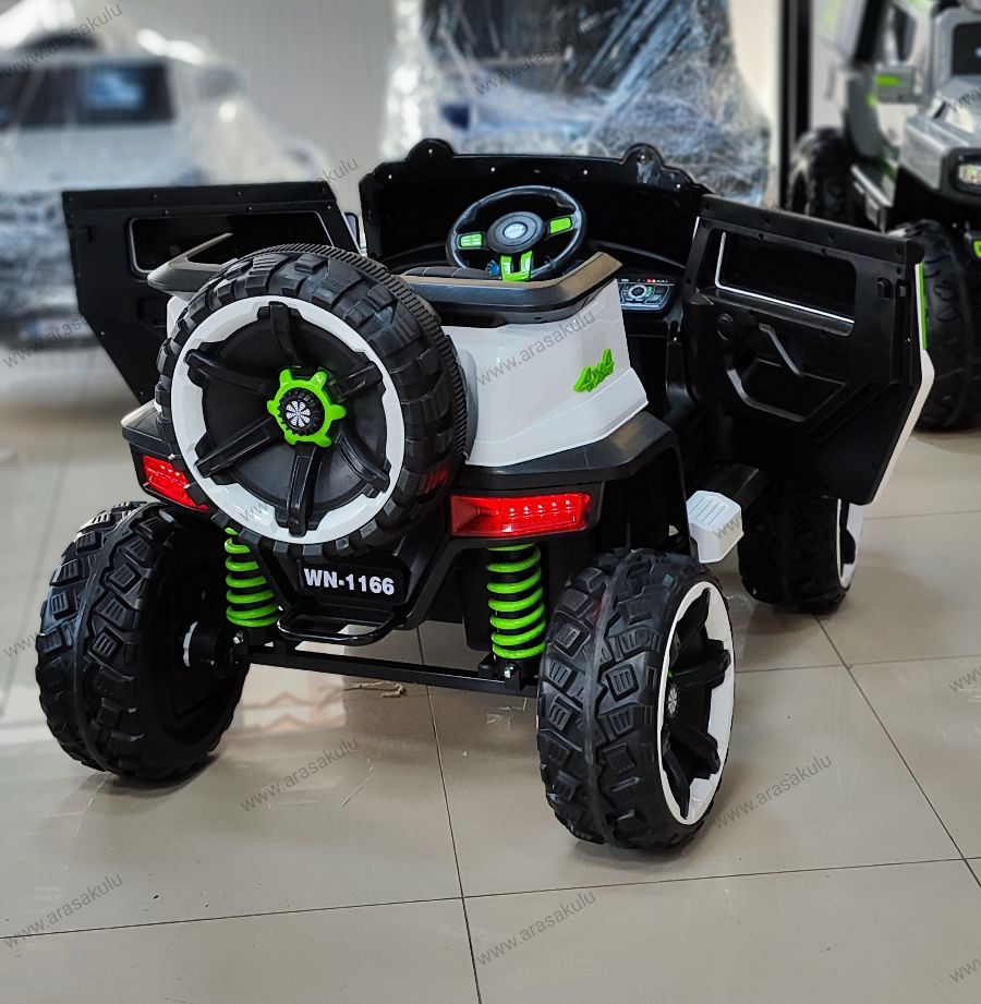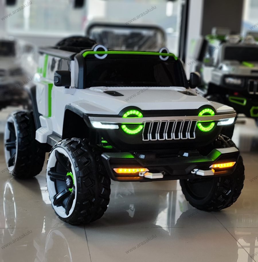 EVA YUMUŞAK LASTİKLER PREMİUM SERİSİ SAYESİNDE ÇAKIL, TOPRAK, ÇAMUR GİBİ ARAZİ ŞARTLARINDA GİDEBİLME 12 volt 4 x4 cekerli Bluetooth kumanda Kumandadan 3 kademe hız ayarı Kumandadan fren özelliği Sarsıntısız kalkış özelliği direksiyondan korna ve kendinden kayıtlı müzikler Açılır kapanır kapıları beşik modu dans özelliği Müzik çalar USB-aux-microsdkart girişi Akü voltaj göstergesi premium serisi deri koltuk emniyet Kemeri Kumanda ve manuel kullanım 1-12 yaşa kadar kullanim imkanı