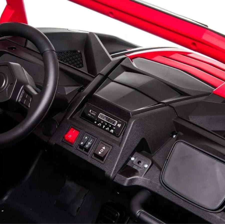 Little Rider Beach Buggy Stinger, iki yüksek performanslı, 24V 200W motora sahip sağlam bir elektrikli UTV'dir. Bu Buggy, sınıfının lideri performansı, kullanımı kolay, basit kontrollerle birleştirir. Düşük hız, yüksek hız, araç içi kontrol için geri vites ve 2.4G ebeveyn uzaktan kumandası vardır. Ride on buggy "Stinger"ımız sizi yerlere götürecek, binecek, marş düğmesine basacak ve çim, kum, toprak veya beton üzerinde vites değiştirecek; bu dayanıklı UTV'nin dahili süspansiyon kiti tümsekleri ve tümsekleri kolaylıkla kaldıracaktır. Bu modeli, tüm gün sallanmanızı ve zıplamanızı sağlamak için büyük tekerlekler, Bluetooth bağlantısı, MP3 ve USB müzik girişi, ön far ve arka stop lambaları ve iki kişilik yumuşak oturma yeri ile donattık. Güç Akü: 24V 7Ah Akü Şarj cihazı: 24V 1000mA Çıkış: DC24V Motor: 4x 200W Gereksinimler Uygun Yaş: 6+ Ağırlık (Kapasite): 60kg Özellikler İki adet 200W Sürüş Motoru 10 km/saat azami hız Büyük tekerlekler İki çalışma modu (Düşük Hız/Yüksek Hız) Ön ve arka ışıklar Ayarlanabilir direksiyon simidi Yüksek mukavemetli çerçeve Boyutlar ve Ağırlık Ürün Ölçüleri: 135 cm x 95 cm x 80 cm Ürün Ağırlığı (Kg): 36 Kg Kutu Ölçüleri: 129 cm x 81 cm x 45 cm Kutu Ağırlığı (Kg): 42 Kg