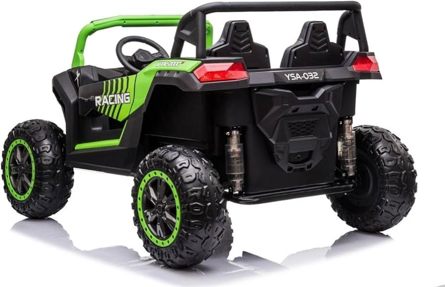 Ride on buggy "Stinger"ımız sizi yerlere götürecek, binecek, marş düğmesine basacak ve çim, kum, toprak veya beton üzerinde vites değiştirecek; bu dayanıklı UTV'nin dahili süspansiyon kiti tümsekleri ve tümsekleri kolaylıkla kaldıracaktır. Bu modeli, tüm gün sallanmanızı ve zıplamanızı sağlamak için büyük tekerlekler, Bluetooth bağlantısı, MP3 ve USB müzik girişi, ön far ve arka stop lambaları ve iki kişilik yumuşak oturma yeri ile donattık.