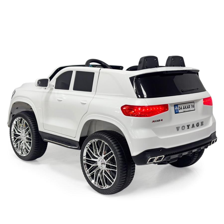 ANDROİD VE İOS TELEFONU KUMANDA OLARAK KULLANMA Deri Koltuk ( Silinebilir, Leke tutmaz, Süngerli, Suniderili ) Paspas Metalize Jant 12V. Akü. Uzaktan kumanda 2.4 Ghz. Taşınabilir ve istenilen yerde şarj edilebilir akü. Ön Konsolda bardaklık. Araç kendi kendine dans etme modu. Uzaktan kumandadan araç kendi kendine dans etme modu açma – kapama Direksiyonda korna ve müzik değiştirme özelliği bulunur. Ön Konsolda Tam elektronik araç kontrol paneli. Bluetooth ,Aux ve USB girişi ve 6 şarkılı Müzik çalar. Digital Akü Şarj göstergesi. 3 farklı hız fonksiyonu bulunur.Uzaktan kumandadan ve araçtan start-stop tuşu. Uzaktan kumanda ile 3 farklı frekans sağlanabilir. Yanıp sönen ışık modu bulunur. Geri viteste uyarı sesi. Çift motorlu. 4 amortisörlü, 2 ön teker 2 arka teker amortisörü. Ledli yanan ön farlar. fren stop lambaları. Farlarda dörtlü flaşör özelliği. İstenildiğinde kontrol panelinden 4 lü flaşör yakma ve kapama. Vidasız direksiyon takma çıkarma özelliği. Çıkarılabilen çocuk emniyet kemeri. Frekans sabitleme özelliği ile diğer akülüler ile karışmaz. Aşırı ısı ve aşırı akıma karşı devre koruma özelliği mevcuttur. Torpido altında kablo koruyucu panel. Ayak gazdan çekildiğinde otomatik fren yapar. Açılır kapanır ve içeriden kilitlenebilir kapılar. Dikiz aynaları Koli Ölçüsü : w:65 cm x L: 119 cm x h: 47 cm Kullanım Yaş Aralığı: 3-8 yaş kullanım için uygundur. Maksimum Taşıma Kapasitesi: 45 kg
